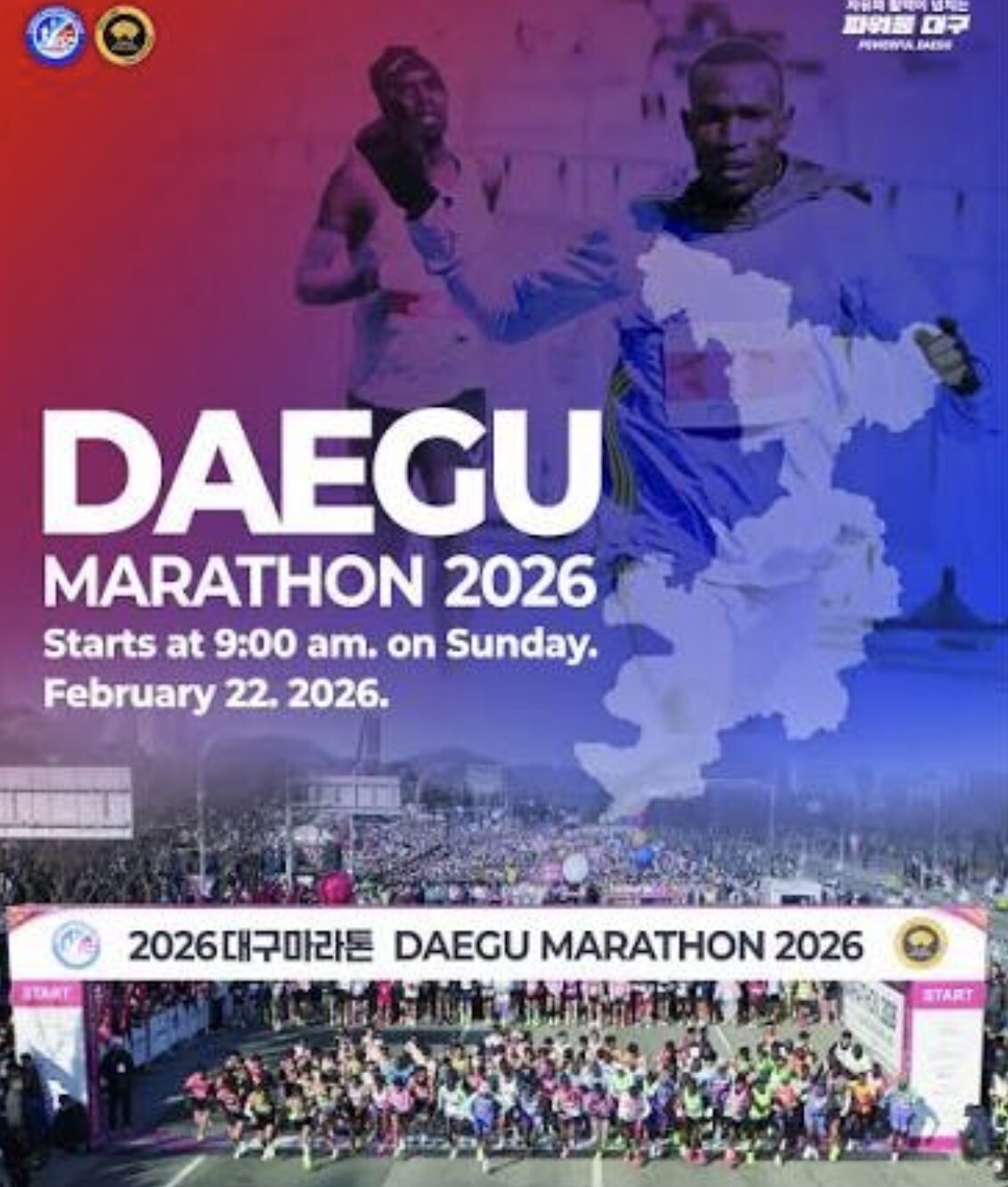Daegu International Marathon brings together varied groups of people with passion for running. With a sincere hope to host a meaningful event for everyone, Daegu International Marathon will amplify the love of running for all and promote a healthy life through running. On behalf of 2.6 million Daegu citizens, we welcome all of you and hope your race in Daegu...
