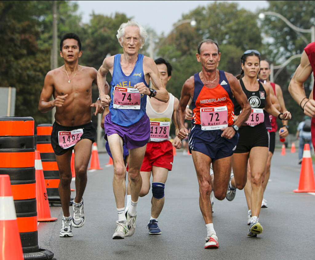 Whitlock, who ran as a teenager and took up the sport again in his forties, first became the oldest person to run a marathon in less than three hours in 2000, at the age of 69, with a time of 2:52:47. He later extended this record, running a time of 2:58:40 at the age of 74. At 73, he set a world record in the marathon for men 70 to 74, running a 2:54:48, his fastest time after turning 70.