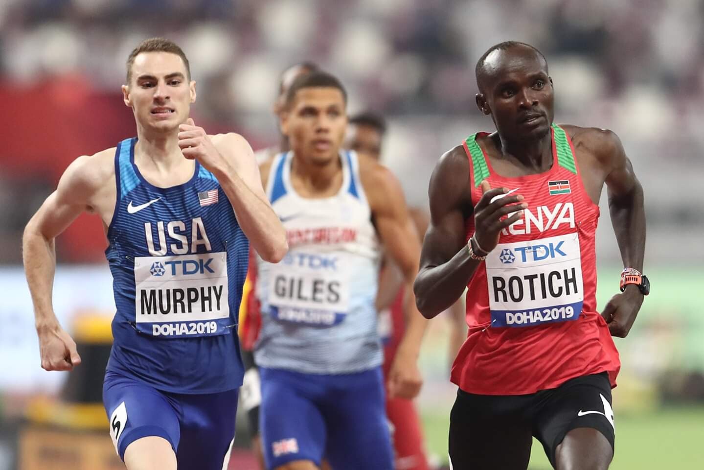 The men's two-lap race played out similarly when 2012 Olympic silver medalist Nijel Amos muscled past the tiring Marco Arop of Canada --who had led after the pacemaker dropped out-- and Emmanuel Korir of Kenya in the homestretch. Amos finished in a world-leading 1:42.91, while Korir got a season's best 1:43.04 and Arop a personal best 1:43.26. Clayton Murphy, the 2016 Olympic bronze medalist finished seventh in 1:44.41.
