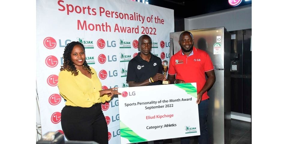 To win the monthly award, Kipyegon went home with a state-of-the-art LG washing machine worth Sh92,000 and a glittering trophy engraved with her name.