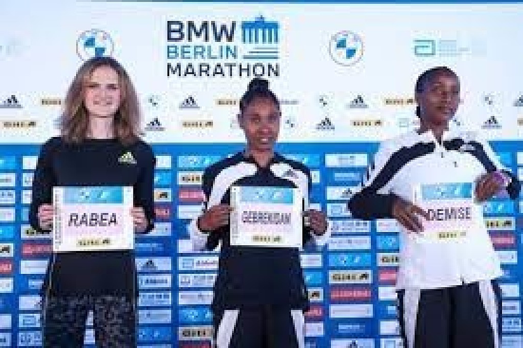 more...It may have been her marathon debut, but Gotytom Gebreslase looked anything but inexperienced on her way to winning the BMW Berlin Marathon, crossing the finish line of the World Athletics Elite Platinum Label road race in 2:20:09 on Sunday (26).