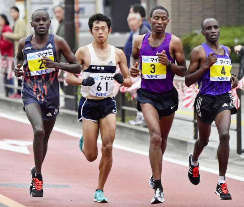 Raymond Kipchumba Choge (Kenya) was the only other athlete from the original front pack to make the top 10, taking 9th in 2:11:38. Taiki Suzuki (Raffine) followed up a solid 3rd-place finish two weeks ago at China's Yiwu International Half Marathon with a 2:12:09 debut for 10th.Amateur runner Yusuke Tobimatsu (Hioki City Hall), a regular front runner in Fukuoka, survived going with the sub-2:10 this time to take 11th in a major PB of 2:12:44, while Sato faded to 2:14:56 after going through halfway in 1:03:02.