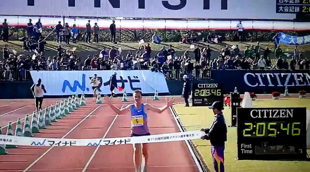 This beats the record of 2:06:11. The Japanese Corporate Track and Field Federation (Project Exceed program) will pay him a 100-million-yen bonus ($879,465 U.S. dollars) for setting a new national record.