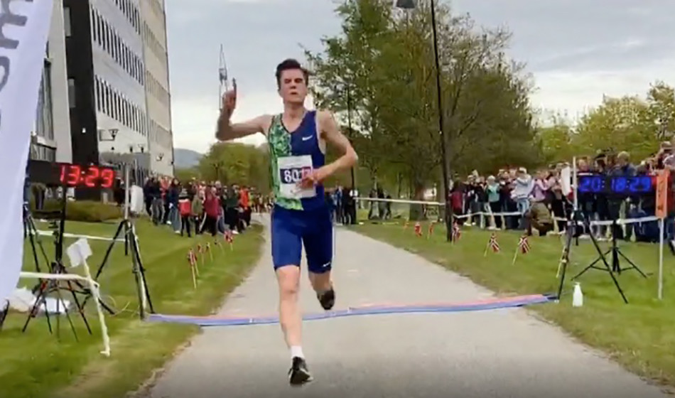 Jakob Ingebrigtsen stormed to a Norwegian 5km record in Stavanger on Wednesday evening, clocking 13:28 as road race action returned to the streets of Norway and the screens of athletics fans across the world.