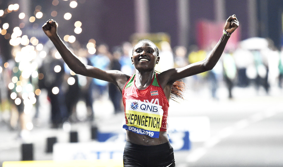 more...The 25-year-old Kenyan broke Paula Radcliffe’s 16-year-old marathon world record at the Bank of America Chicago Marathon last October clocking an incredible time of 2:14:04. The record-breaking run came six months after Kosgei won the London Marathon for the first time.
