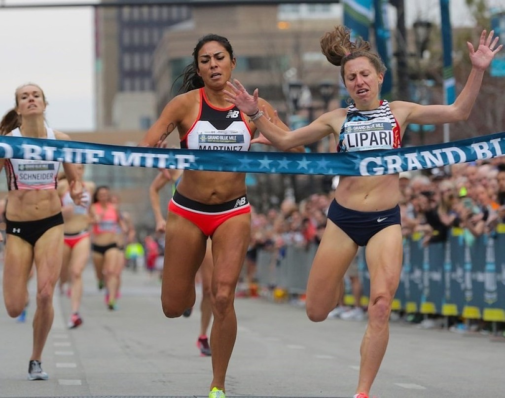 Nikki Hiltz and Tripp Hurt raced to the USATF Road 1-Mile National Championship Tuesday evening on the streets of Des Moines as part of the 10th Wellmark Blue Cross and Blue Shield Grand Blue Mile.