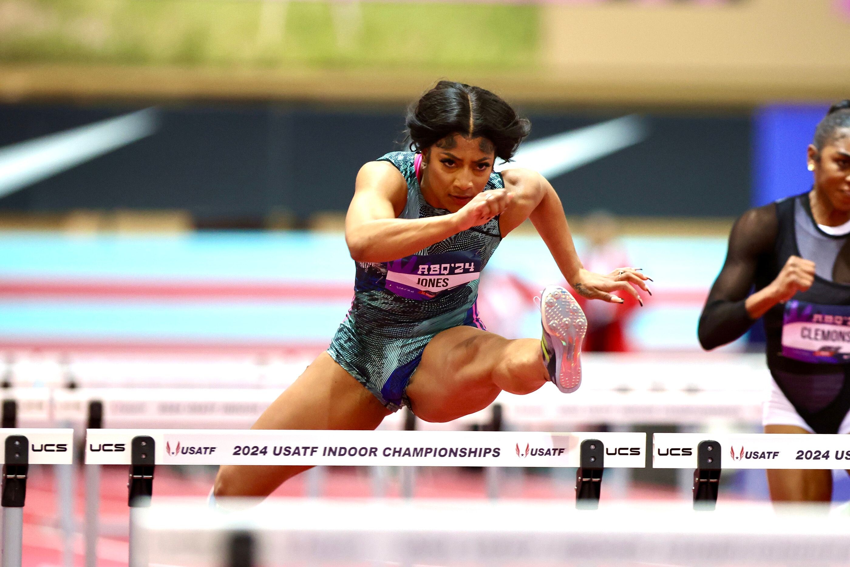 Women’s 60m: Mikiah Brisco (USA) and Zoe Hobbs (NZL) lead the field.