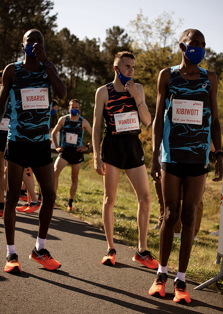 It’s 8:00 am in the French woodland area of Morton, Domaine du Bois aux Daims, on April 24. Situated almost 300 miles from the country’s capital, a select group of Europe’s top runners, including Julien Wanders and Sondre Nordstad Moen, ponder at the start line of ASICS’ “(BE)AT Your Personal Best”, with some preparing for their first taste of competitive running in almost a year.