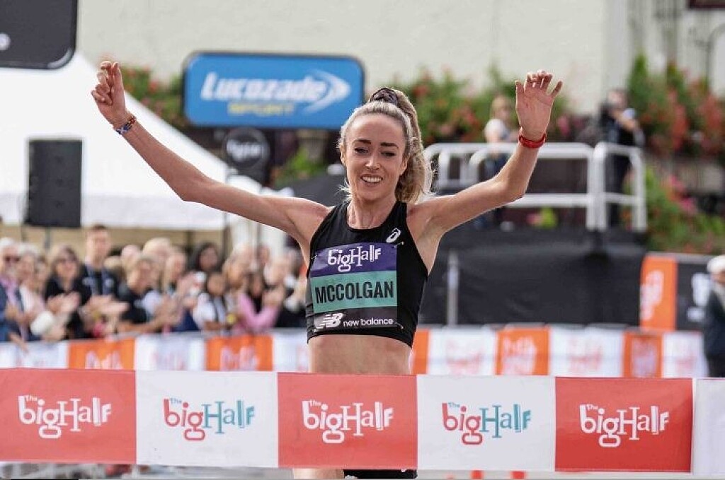 more...Eilish McColgan has done it again. At The Big Half 21.1K in London on Sunday, McColgan determinedly chased down victory in 67 minutes, 34 seconds, knocking over two minutes off of Charlotte Purdue‘s course record of 69 minutes, 51 seconds. McColgan was followed by Purdue in 70:15 and Samantha Harrison in 70:22.