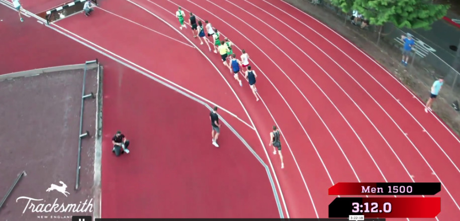 On the final 200 meters of the mile race, Daschbach stormed from behind and went from the fourth to first place runner in his six-person heat and ran a stunning final lap. Knowing his clocked time at the 3:02.74 minute mark in the penultimate lap, he needed to catch up on 57.25.