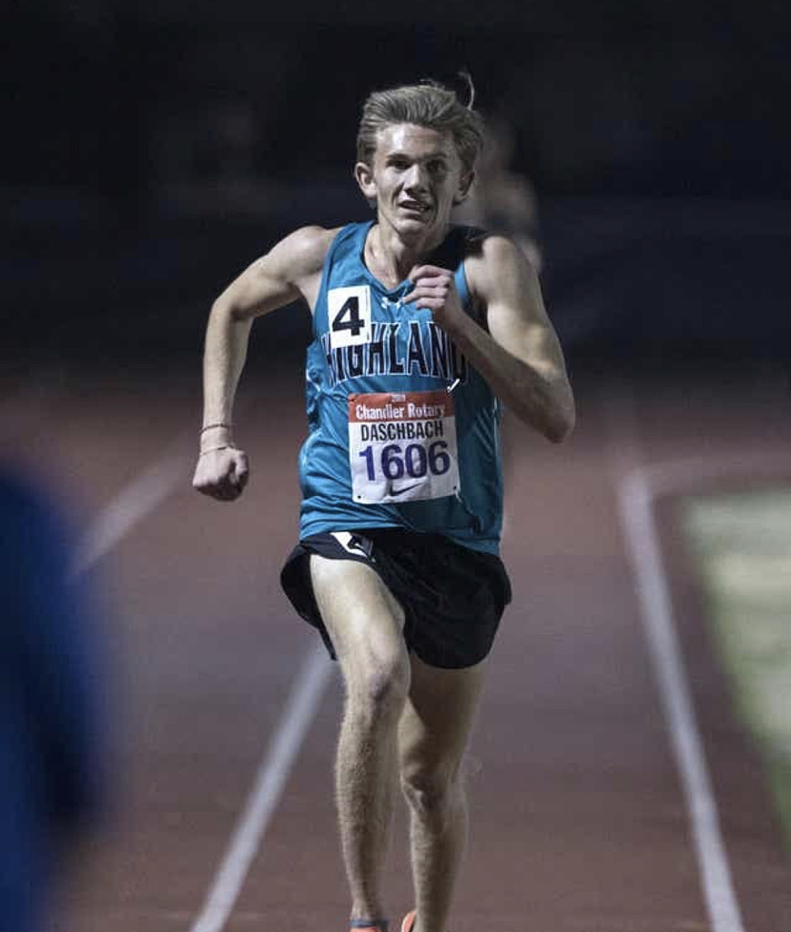 The achievement makes Daschbach the best miler in state history. In addition, Daschbach got his second all-time national mark within a year after earned the second-best all-time mark in the 5K at the Desert Twilight cross country meet in September.