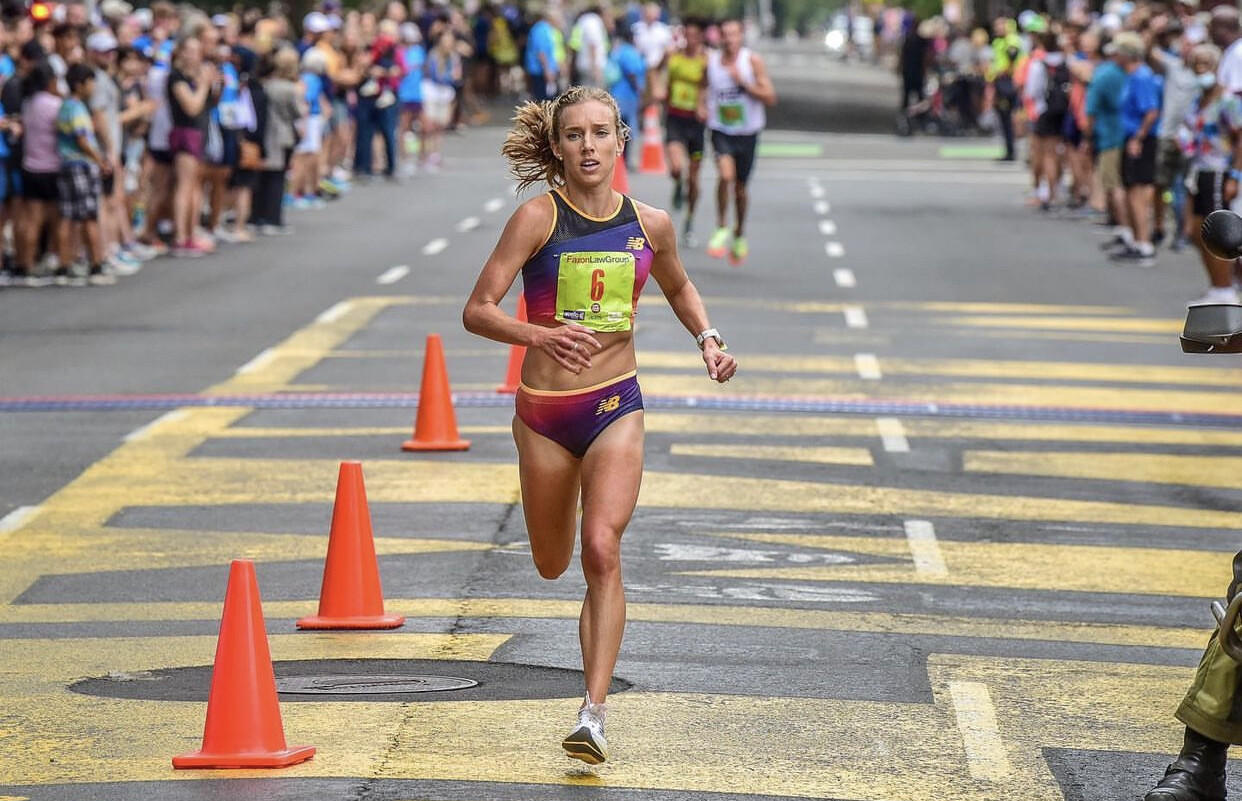 Jorgensen worked her way to the marathon by racing on the track in the spring of 2018 and ran a few U.S.A. Track and Field road race championships. She says her training went well, nailing all but one workout in 12 weeks. But in the three days before she was set to compete in the Chicago Marathon, Jorgesen battled a fever and underestimated the effects of running while sick. She finished in a disappointing 2:36:23 in her professional marathon debut.