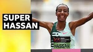 In the women's race, Hassan, who won the 5,000m and 10,000m at the Tokyo Olympics in 2021, appeared out of the race after dropping back early on with a hip problem, but gradually fought back.