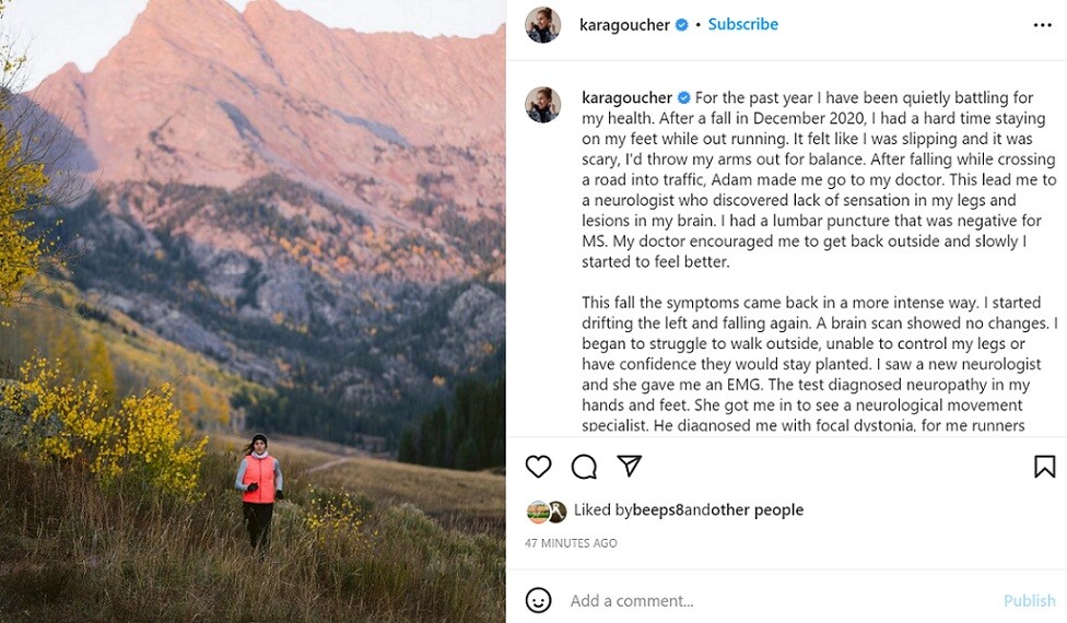 Goucher began her professional running career with Nike—an experience she detailed in her tell-all memoir last year, The Longest Race: Inside the Secret World of Abuse, Doping, and Deception on Nike’s Elite Running Team. She moved on to the Skechers Performance Elite Team and signed with Oiselle in 2014 and then switched to Altra in 2018, but lost her ability to compete at a high level in 2021, when she was diagnosed with dystonia, a neurological movement disorder.