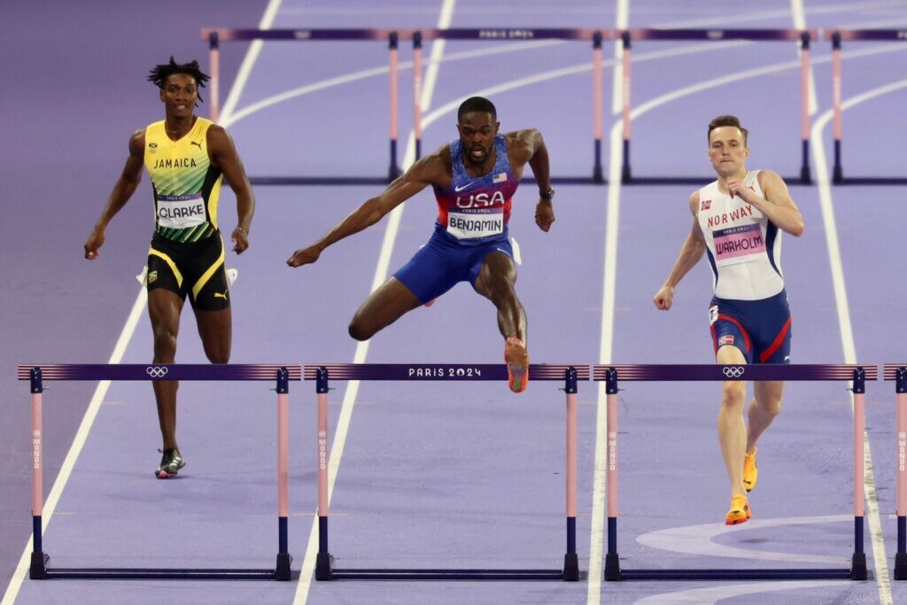 In August 2021, Warholm broke the 400 meters hurdles record with a time of 45.94 seconds with Benjamin clocking 46.17 for the silver medal.