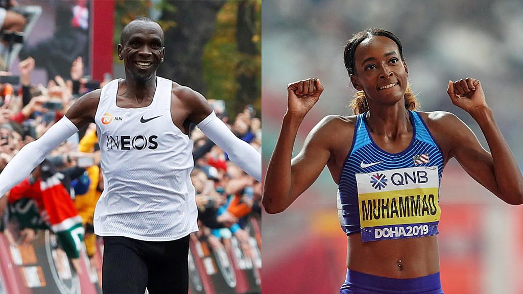 Record-breakers Dalilah Muhammad and Eliud Kipchoge were named the World Athletics athletes of the year on Saturday.