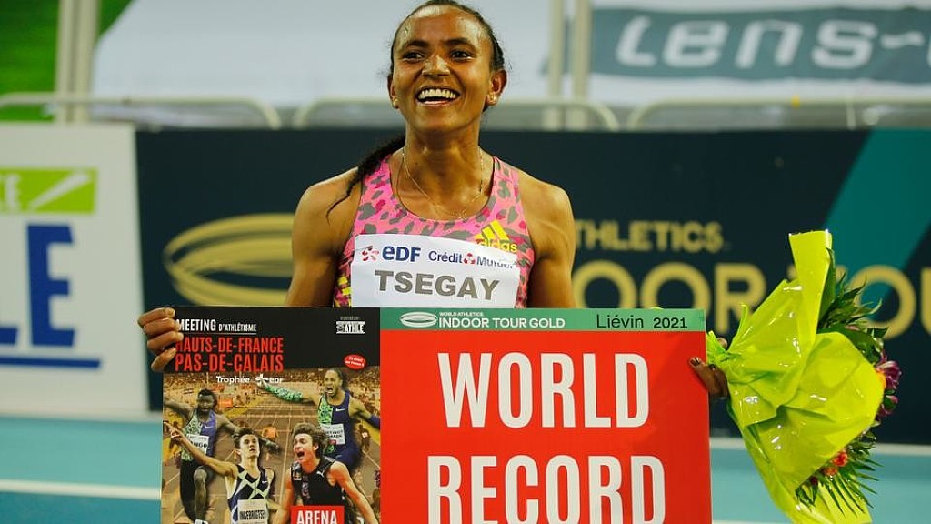 The clock read 2:52.9 with two laps to go and Tsegay maintained her pace with another lap just outside 30 seconds. She dug in for the final circuit and crossed the line in 3:53.09, taking more than two seconds off the world indoor record set by compatriot Genzebe Dibaba in Karlsruhe in 2014.