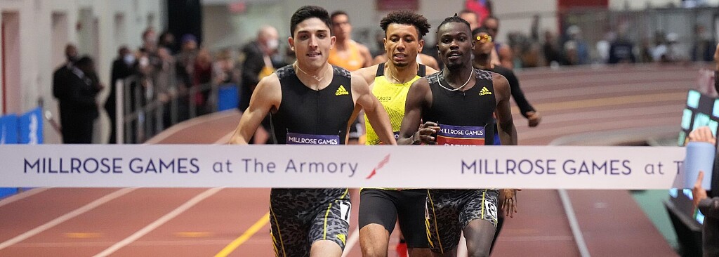 In the fastest race of the year, he led at the bell and fought off all challenges, setting a personal best of 3:28.28 as four men dipped under 3:30.