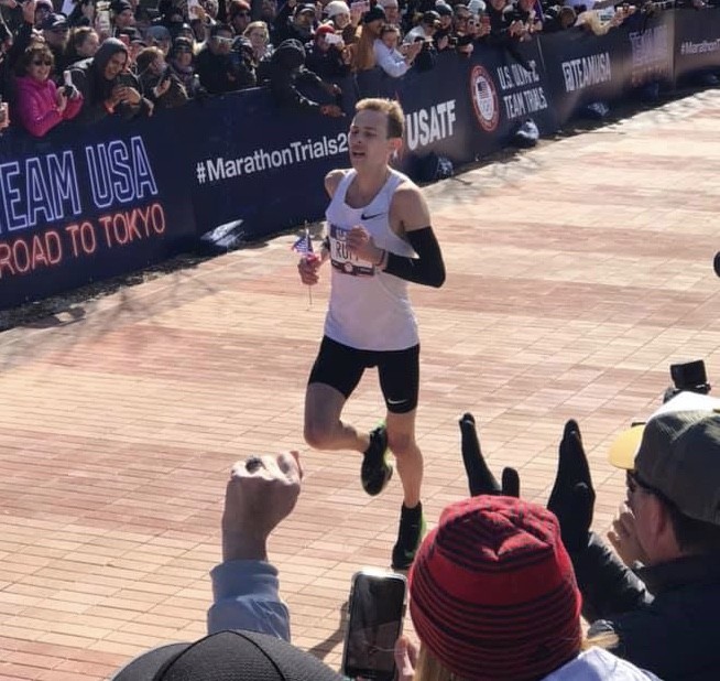 Katy qualified in her marathon debut in Houston in January, running a negative split (78 minutes the first half and 75 the second) to go under the “A” standard (2:37) for the trials, finishing in 2:33:41. It turned out to be a great day for the Jermanns as Tyler also ran under the men’s “A” standard (2:15) with a personal best of 2:13:29. Both finished ninth in their respective races.