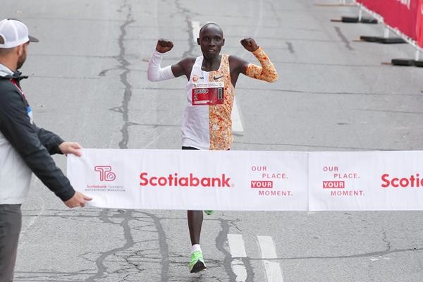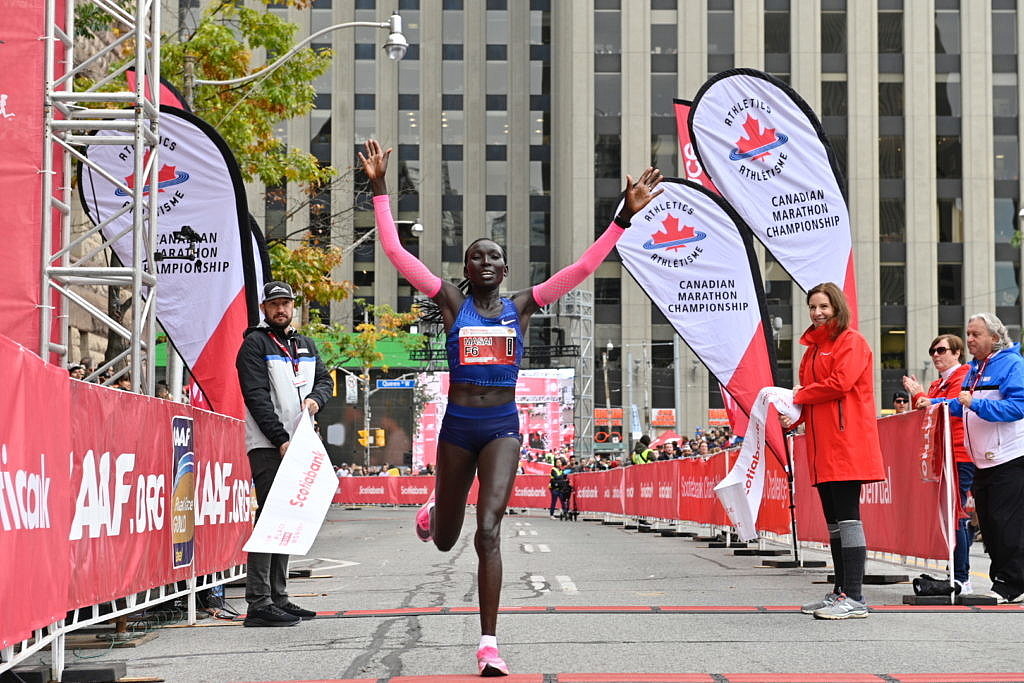 While Rono achieved an incredible record, earning CDN$30,000 for the victory along with CDN$50,000 for the all-comers’ record, it was his compatriot Magdalyne Masai-Robertson who claimed the women’s victory with an enormous personal best of 2:22:16. That beat the course record set by Mimi Belete last year by 13 seconds and improved the Canadian all-comers' record by one second.