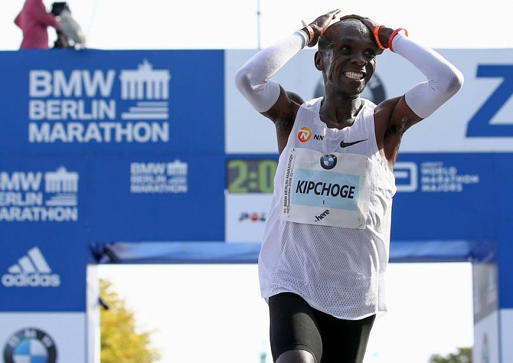 "He had just smashed the world marathon record clocking 2:01:39. Eliud ran the last 17k without pacers, pushing himself, taking off one minute and 18 seconds off of Dennis Kimetto's record."