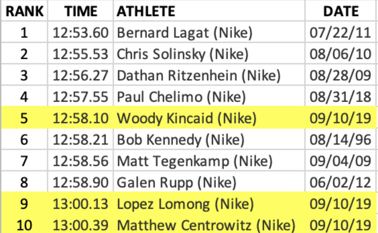Asked if he felt in 12:58 shape when he arrived at the track. Kincaid looked incredulous and said: “I don’t know if I feel that I’m in 12:58 shape now.”