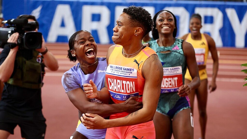 Devynne Charlton won the women’s 60m hurdles in 7.91, while Tonea Marshall ran a season’s best of 7.94 and Sharika Nelvis clocked 7.96 to edge Olympic silver medallist Nia Ali in 7.97.