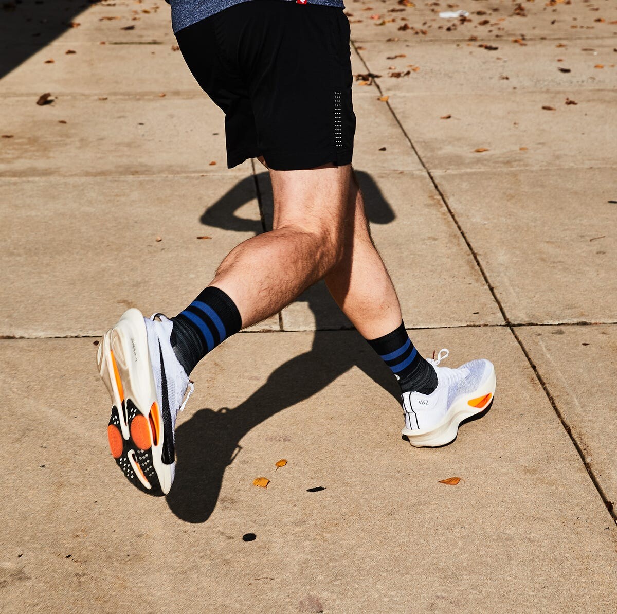 While this is a highly debated topic, the current thinking is to limit the amount of time spent training in carbon fiber plated shoes. These shoes are built with a thick, highly cushioned, and unstable platform, and a rigid rocker profile. Unlike more flexible running shoes that allow your foot to move naturally, carbon fiber shoes dictate the way your feet strike the ground and roll forward, potentially altering your natural gait, which can lead to injury. In addition, the powerful bounce magnifies any instability, causing more stress on your muscles, tendons, and joints. Ideally, limit your carbon-plated shoes to race day and a few speed sessions. Super trainers—with the same high-end foams but more flexible plates—can be a great alternative for weekly speed sessions or fast-finish long runs.