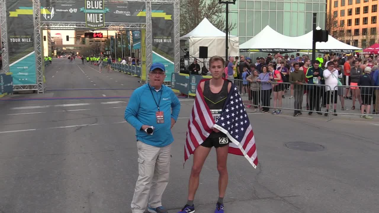 Hurt won the men’s race in 4:04, in a photo finish as the top-five finishers all finished within a second of each other. Hiltz took the lead of the women’s race off the final turn and held off three-time Grand Blue Mile champion Heather Kampf to set an event record in 4:30.