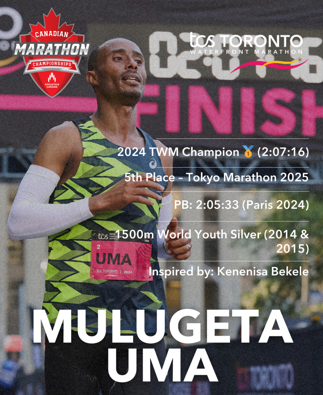 Looking ahead to October, Uma has his eyes not just on defending his crown but also on history. The course record in Toronto remains 2:05:00, set in 2019 by Kenya’s Philemon Rono.
