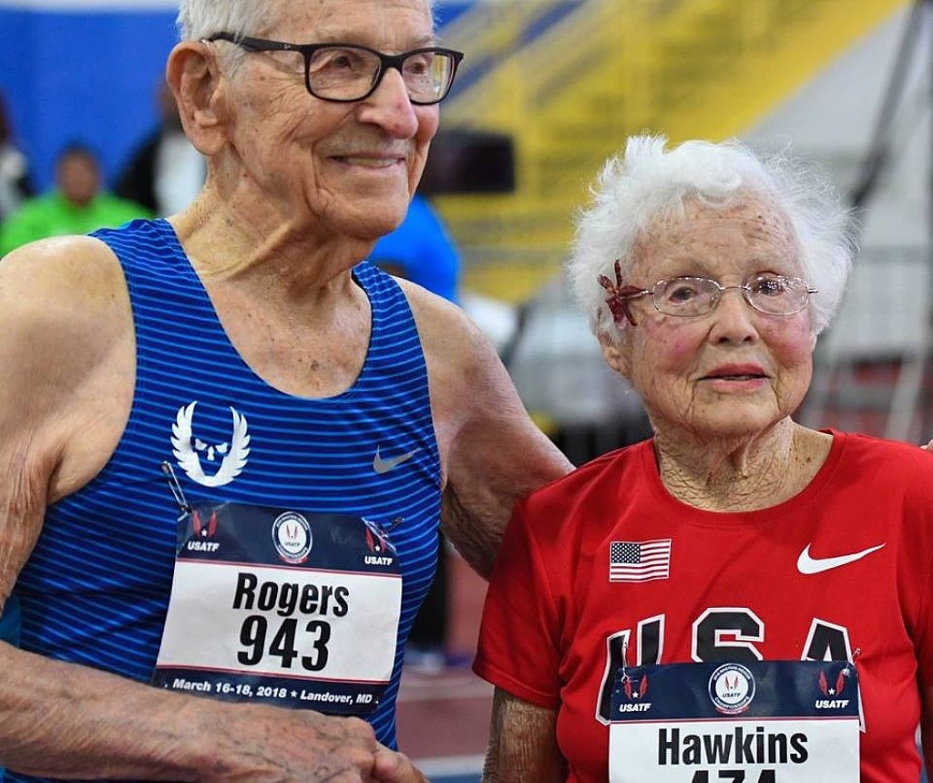 Not to be outdone, 102-year-old Julia “Hurricane†Hawkins broke the 100-plus age group records in the 60m.