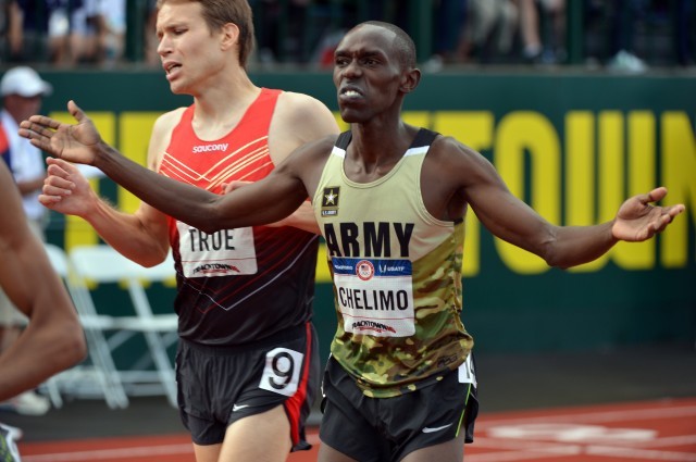 Born in Iten, Kenya, Chelimo moved to the United States on a running scholarship in 2010. After graduating from the University of North Carolina majoring in public health, he joined the Army’s World Class Athlete Program.