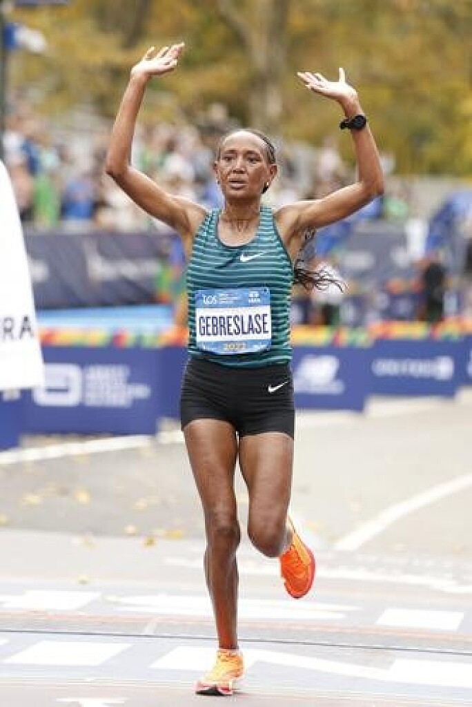The 28-year-old Gebreslase of Ethiopia clocked her personal best of 2:18:11 when claiming the world title in Oregon in July 2022. She also registered another sub-2:20 mark when finishing third at the 2022 Tokyo Marathon in 2:18:18 and took a 2:20:09 victory at the Berlin Marathon in 2021.