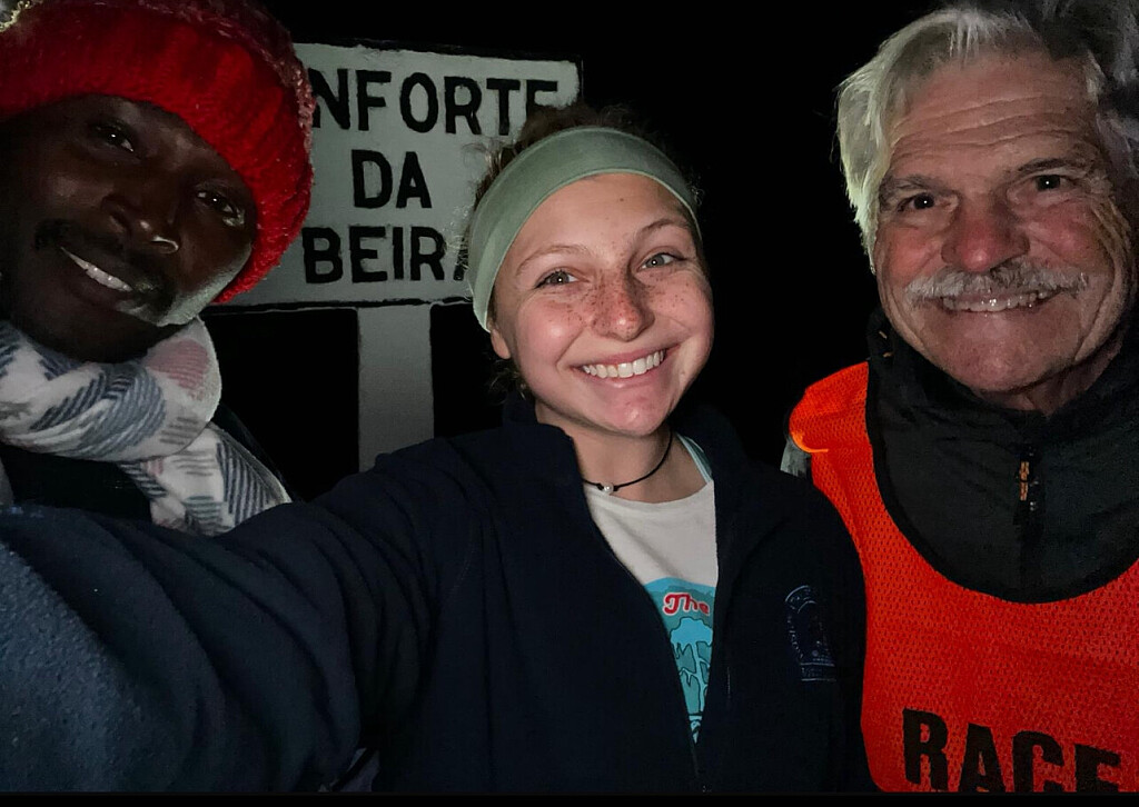 Photos: 1. Bob in Monforte da Beira with coach Dennis, and guests Risper and Jane. 2. Bob on a training run in KATA Kenya 3. Bob getting in miles on the way to lunch in California