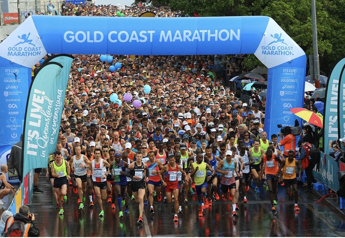 Weather conditions on the Gold Coast were less than ideal, with athletes in both the full- and half-marathons battling headwinds and heavy rain.