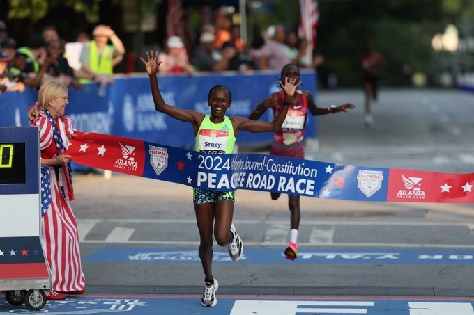 Sebastian Sawe won The Atlanta Journal-Constitution Peachtree Road Race’s men’s elite division Thursday with an unofficial time of 28:03. He currently is the No. 1-ranked road racer in the world.