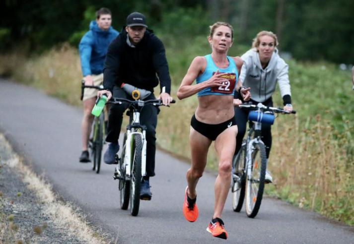 One cornerstone of her training is the weekly long run on Sundays, and most weeks it has some structure to it, with tempo portions or a fartlek. For most of the team, the distance ranges from 12 to 16 miles, depending on the person.