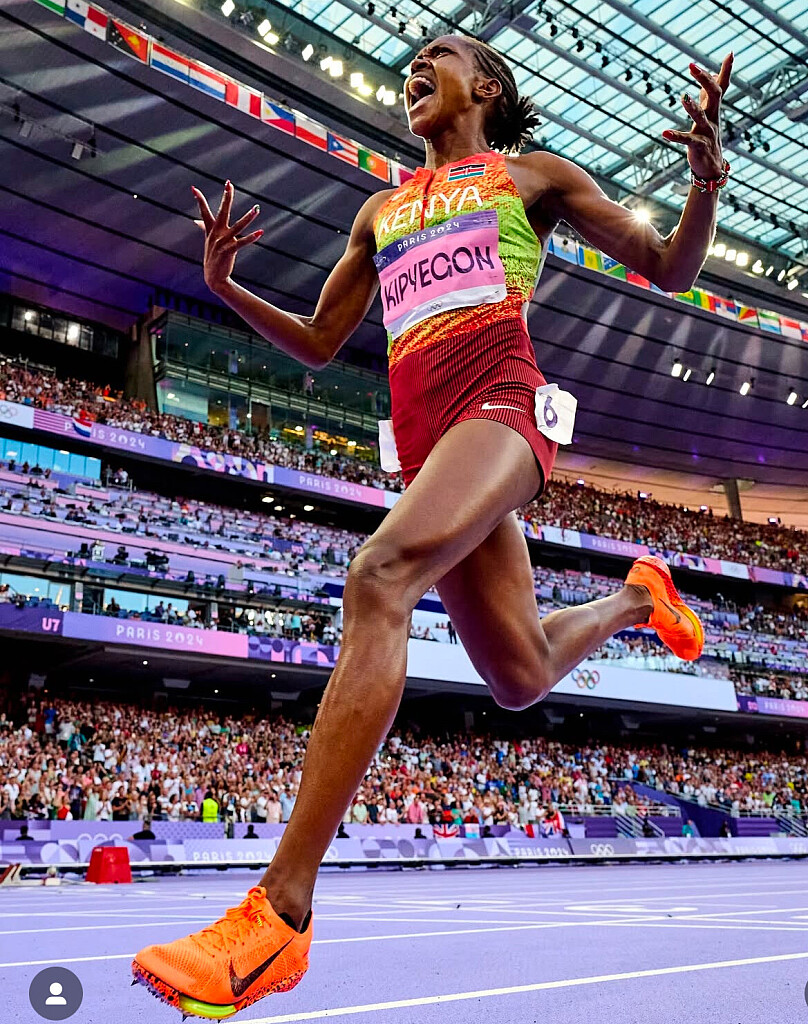 Kenya will however keep pride in making history after Faith Kipyegon became the first woman to complete an Olympic hat trick after breaking her 1500m record in 3:51.29, before a fully packed iconic Stade de France.