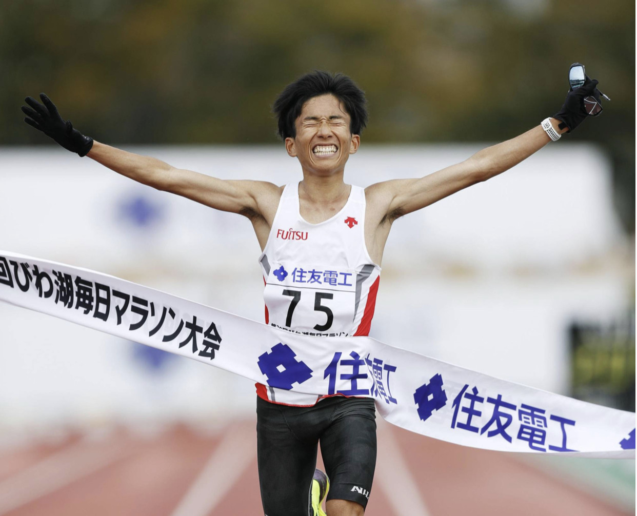 During the race Shitara suffered a mishap, bleeding from both nipples early on. "It rained right before the start," he said, "and once I started running it started chafing. I was a little worried about it, but if you want to compete at the top of the game then there are no excuses."