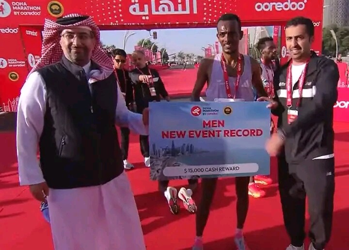 Tola crossed first in 2:05:40, shattering the previous course record of 2:06:49 and redefining what was possible on Doha’s roads. Boki followed in 2:05:55, with Boki Diriba claiming third in 2:06:26, completing an emphatic all-Ethiopian podium sweep. The dominance extended beyond medals: Dinkalem Ayele and Balew Yihunle secured fourth and fifth, sealing a clean Ethiopian lockout of the top five. Eritrea’s Oqbe Kibrom Ruesom and Kenya’s Nicholas Kirwa fought gamely further back, but on this day, Doha belonged unmistakably to Ethiopia.