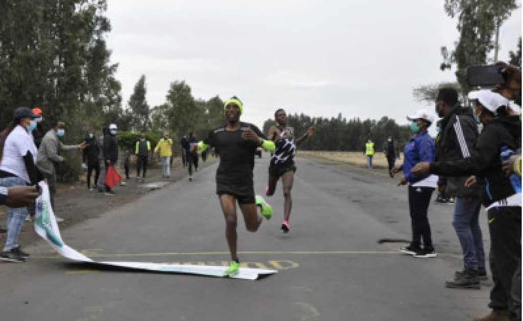 Bute Gemechu broke away from the leading men’s group at 35km. Compatriot Shifera Tamru cut the gap to about 20 metres with two kilometres to go, but his challenge was short-lived.