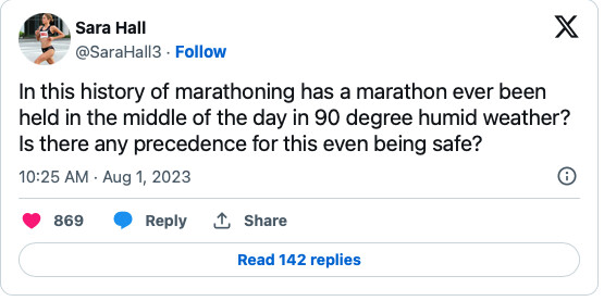 A couple of Trials veterans have already shared their thoughts, with Sara Halland Des Linden offering contrasting viewpoints. Hall, who is known to not like racing in hot weather, expressed concern about the heat and the safety of the athletes. She even challenged USATF CEO Max Siegel to run a hot weather marathon this summer.