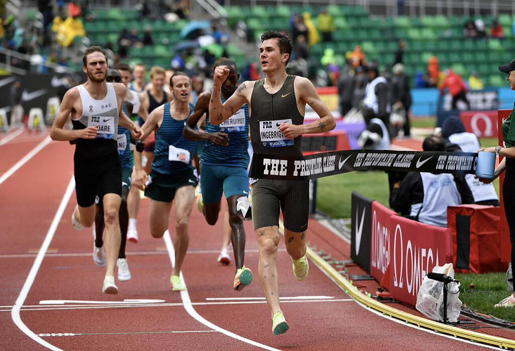 Norway’s Jakob Ingebrigtsen re-asserted his supremacy in the Bowerman Mile, the Olympic champion breaking clear with a lap to run and coming home a comfortable winner in a world lead of 3:49.76, with Australia’s Ollie Hoare second in a PB of 3:50.65 and world champion Timothy Cheruiyot third in 3:50.77.
