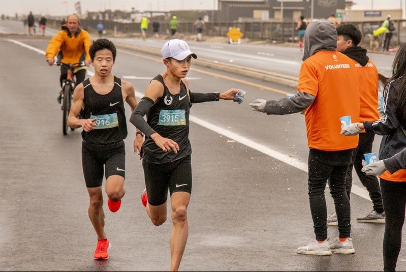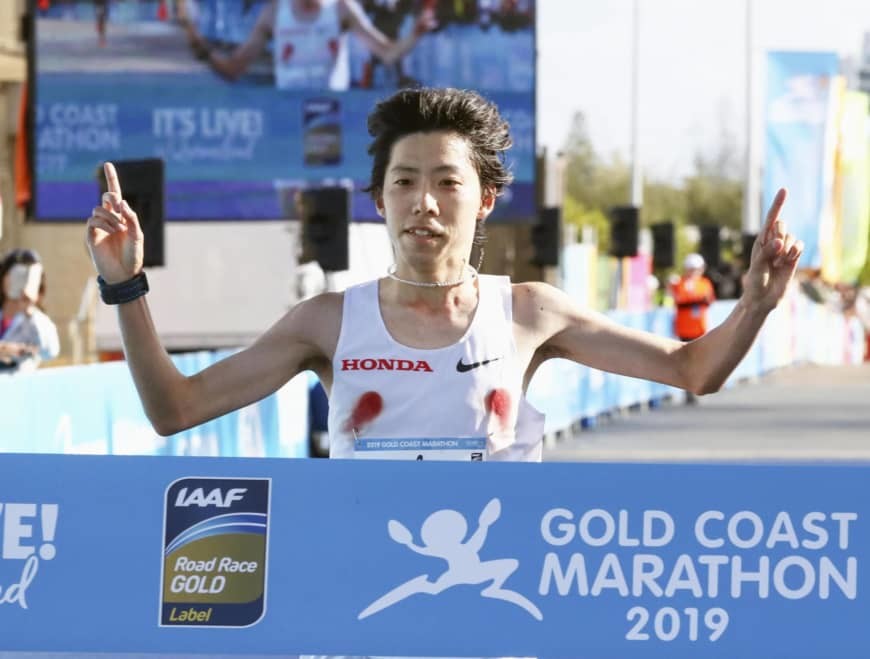 During the race Shitara suffered a mishap, bleeding from both nipples early on. "It rained right before the start," he said, "and once I started running it started chafing. I was a little worried about it, but if you want to compete at the top of the game then there are no excuses."