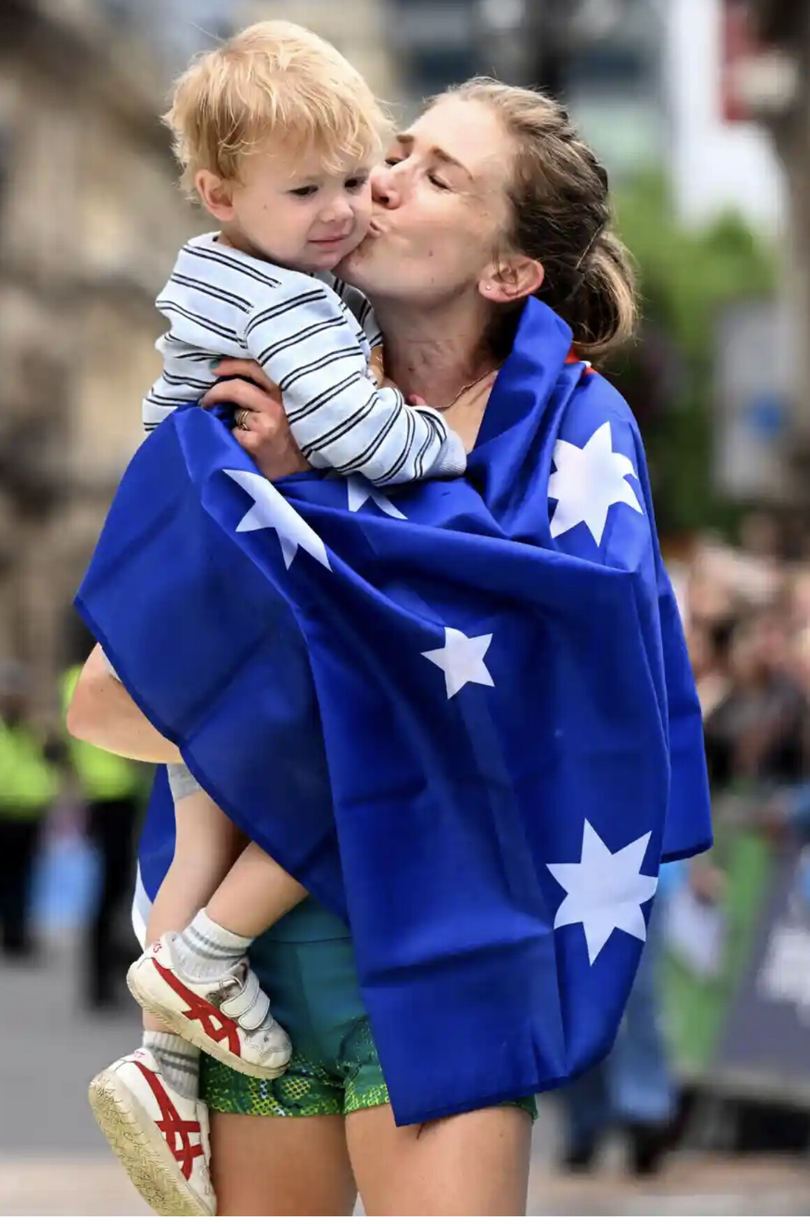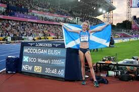 The sold-out crowd of 32,000 at Birmingham’s Alexander Stadium roared as McColgan sprinted to her first gold medal at an international competition. She ran straight to her the arms of her mother, Liz, where the two shed tears of joy and triumph, while wrapped in the Scottish flag.