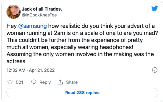 Other critics questioned whether enough female production crew were involved in the making of the advert; a point picked up by the women's safety campaign group Reclaim These Streets, which was set up after Sarah Everard's murder.