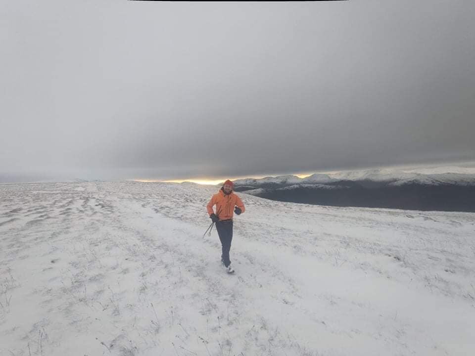 What made Gibson’s journey unique was the wind, rain, snow and ice he had to endure. A wicked snowstorm hit the coastal mountain range on the sixth day of his journey, resulting in him descending back to the valley. As the storm blasted through, Gibson and his crew resumed, trekking through a foot of snow. As Gibson reached the last peak, he celebrated with a beer before returning to Keswick to finish.