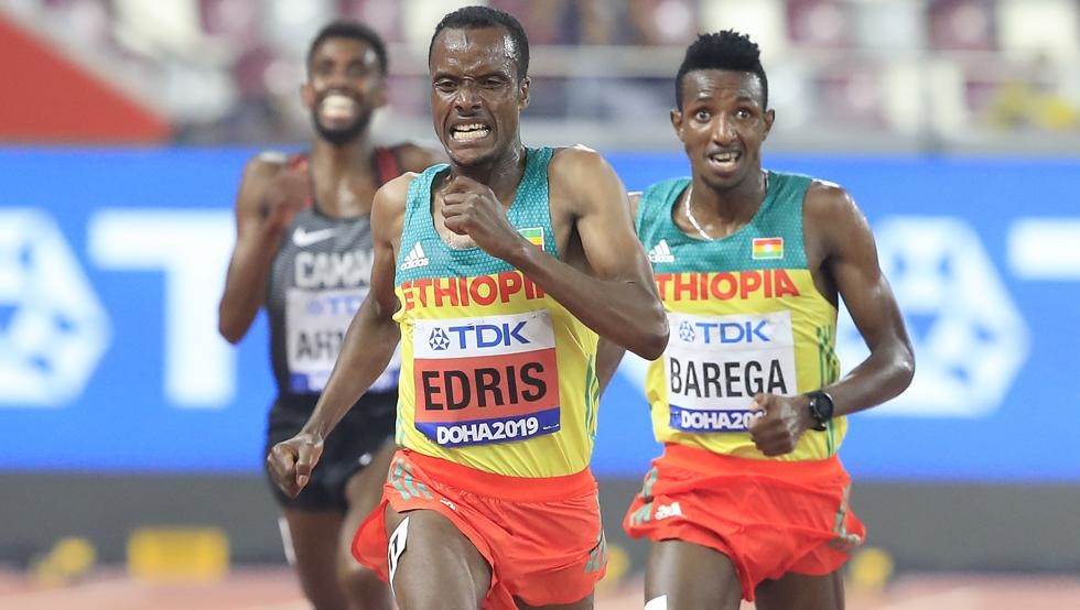 Edris’ compatriot Selemon Barega, who ran 12:43 last year, nabbed silver in 12:59.70. Moh Ahmed of the Bowerman Track Club made history for in third (13:01.11), earning Canada’s first-ever world or Olympic medal in an event longer than 1500 meters, after a confident run that saw him lead from 3800 until just after the bell.