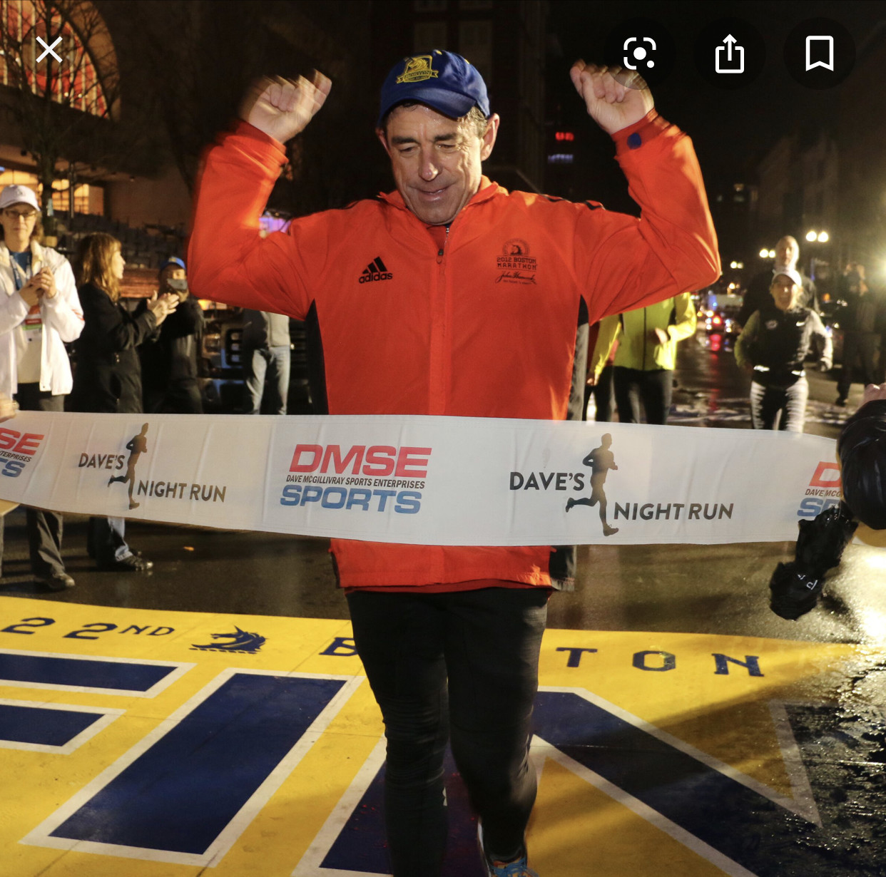 (Photos: After surgery, October 12, 2018 at Mass General Hospital. Crossing the Boston Marathon this year. Running in the Middlemiss Big Heart Celebrity Mile a year later - two weeks ago).