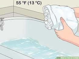 In general, for an ice bath, the athlete will sit in a bathtub which is filled with ice and water to a temperature of about 50 degrees. Your legs and hips are covered, while your torso and arms are out of the tub.